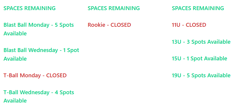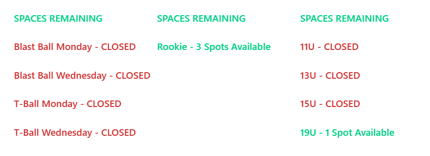 Regular Season and Summer Camp Registration NOW OPEN!!!