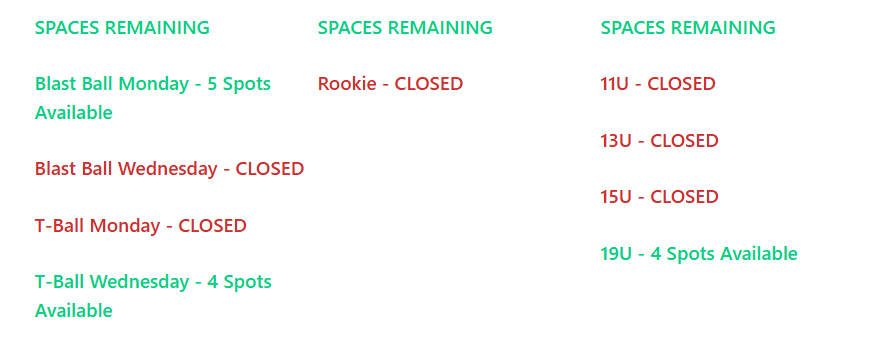 Please check out all the different programs we offer for the young baseball lovers in your home